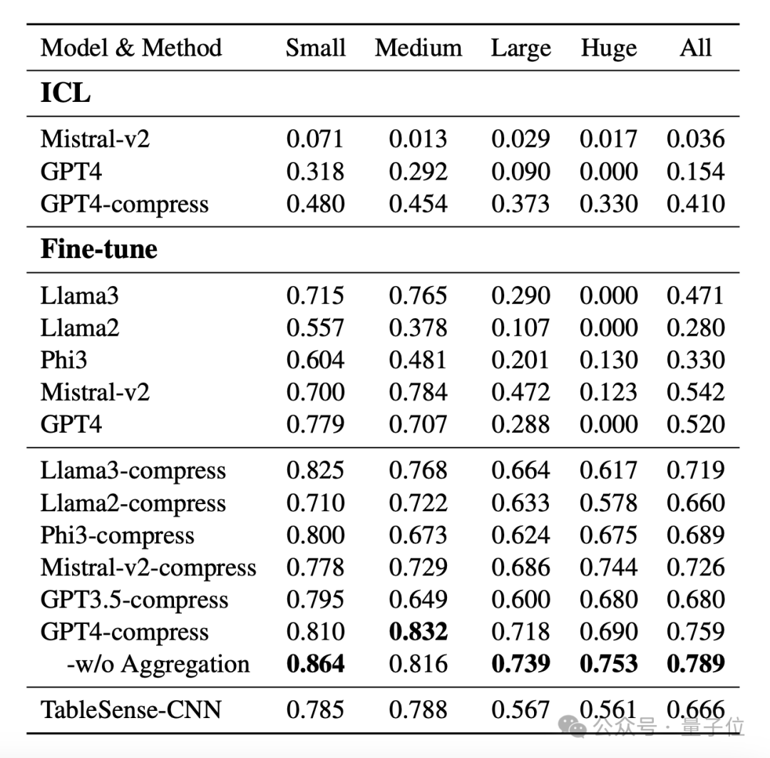在实验结果来看,SheetCompressor将tokens使用量减少了96%,并且与原始数据上微调的相同模型相比,性能提高了27%,在表格检测任务上的F1分数达到了约79%。
