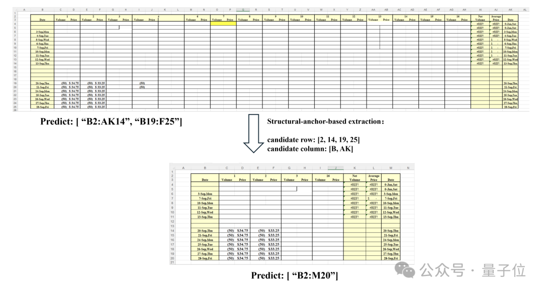这一步骤主要是通过识别和提取这些结构锚点,然后移除远离锚点的同质行和列,生成一个精简版的“骨架”电子表格。