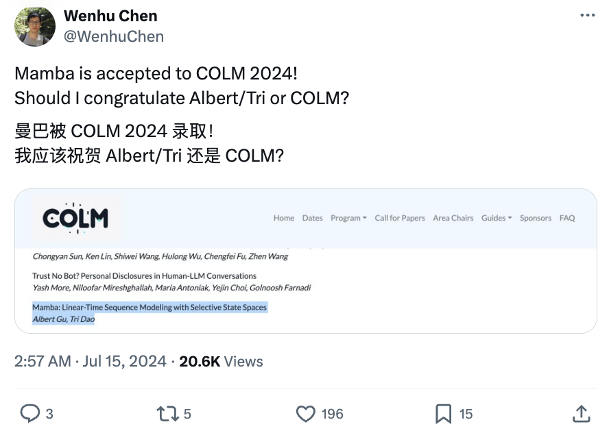 不过,最近已经被新生代顶流会议CoLM2024接收了。