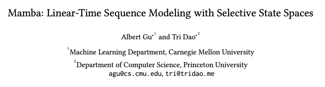 Mamba架构由FlashAttention作者Tri Dao和CMU助理教授、Cartesia AI联合创始人及首席科学家Albert Gu在去年年底提出。