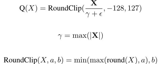 另外,为了适配量化模型,Q-Sparse在应用Top-K稀疏化之前,会先对输入张量进行量化,以确保稀疏化操作与量化表示兼容,其函数表示如下: