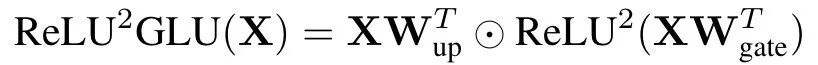 对于前馈层,Q-Sparse使用平方ReLU函数代替常规的ReLU激活函数,平方运算可以进一步提高激活的稀疏性(⊙表示Hadamard积)。