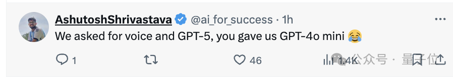 不过也有网友略有点失望:我们要想要的是GPT-5,你却给我GPT-4o mini。