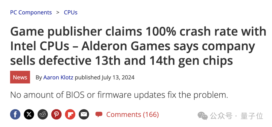 澳大利亚游戏开发商Alderon Games更是指控,13和14代Intel CPU的崩溃率是100%。