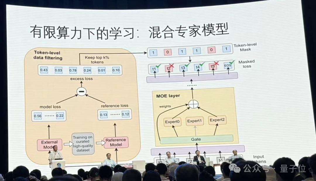 首先郭院士提到了在算力限制下,采用更经济的MOE混合专家模型也能达到很好的效果。