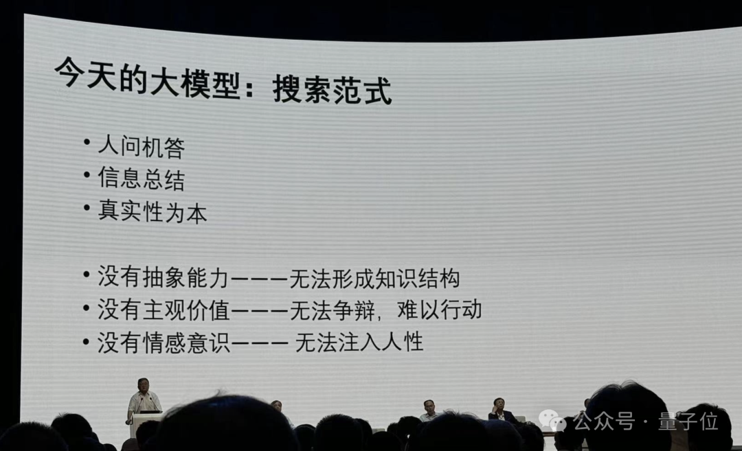正因为如此,郭院士认为应该走出今天大模型“没有抽象能力、没有主观价值、没有情感知识”的搜索范式。
