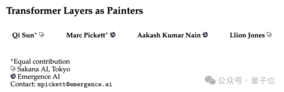 最近一项名为“Transformer Layers as Painters”的研究火了,由来自AI初创公司Sakana AI、Emergence AI的研究团队完成。