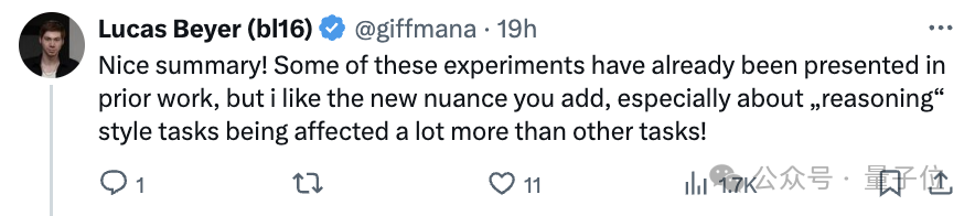 谷歌DeepMind研究员、ViT作者Lucas Beyer看过后直接点了个赞:
