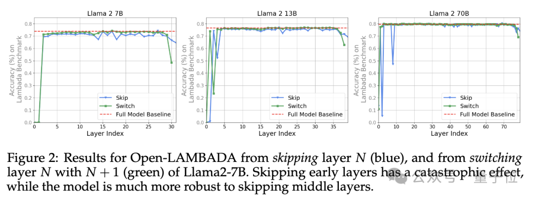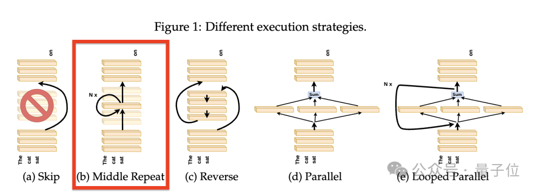 此类实验中,研究人员正常执行第一层和最后N-1层,而跳过或修改第N+1到第T-N层(T是模型总层数)。