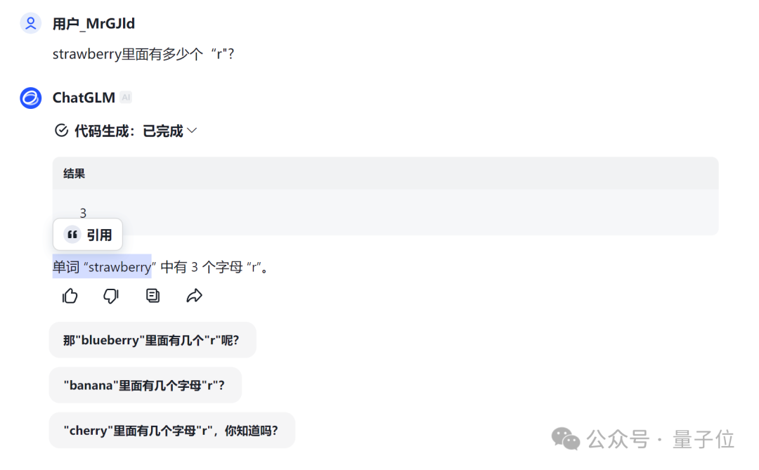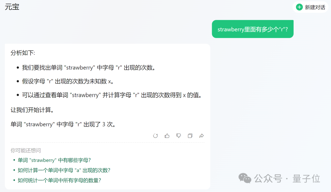 参考链接:[1]https://x.com/diegoasua/status/1816146114573394143[2]https://www.reddit.com/r/ClaudeAI/comments/1eap6b1/comment/leolf3t/[3]https://www.reddit.com/r/ChatGPT/comments/1do7cnq/counting_the_rs_a_chat_with_chatgpt/[4]https://www.reddit.com/r/ChatGPT/comments/1dpfj2c/a_prompt_where_chatgpt_gets_the_strawberry/