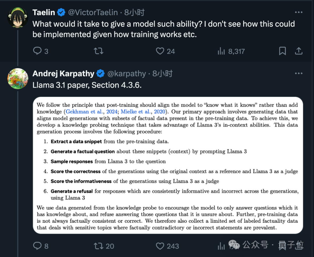 至于教给大模型判断自己知道不知道的方法,Meta在LLama 3.1论文中也有所涉及。