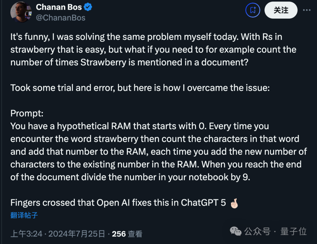还有人想到更深一层,如果要计算文档中straberry出现多少次怎么办?