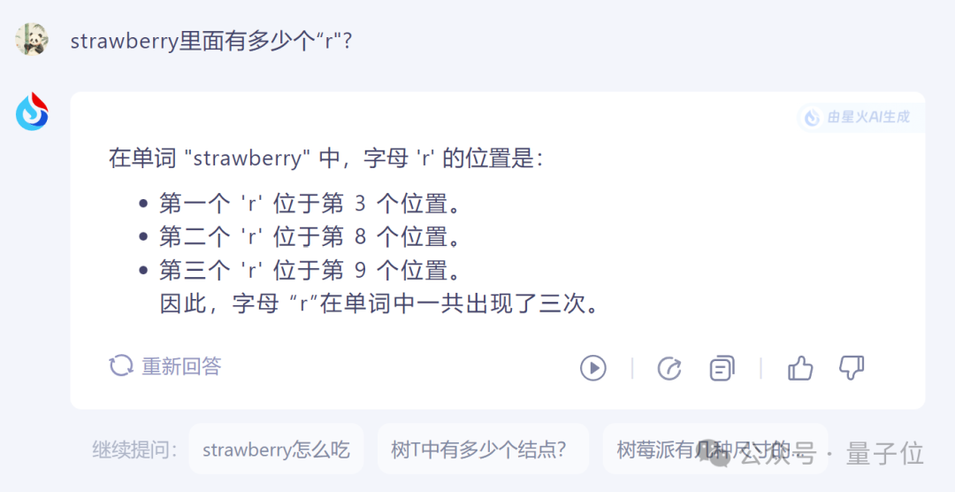 讯飞星火也通过找出“r”所在位置给出了正确回答。