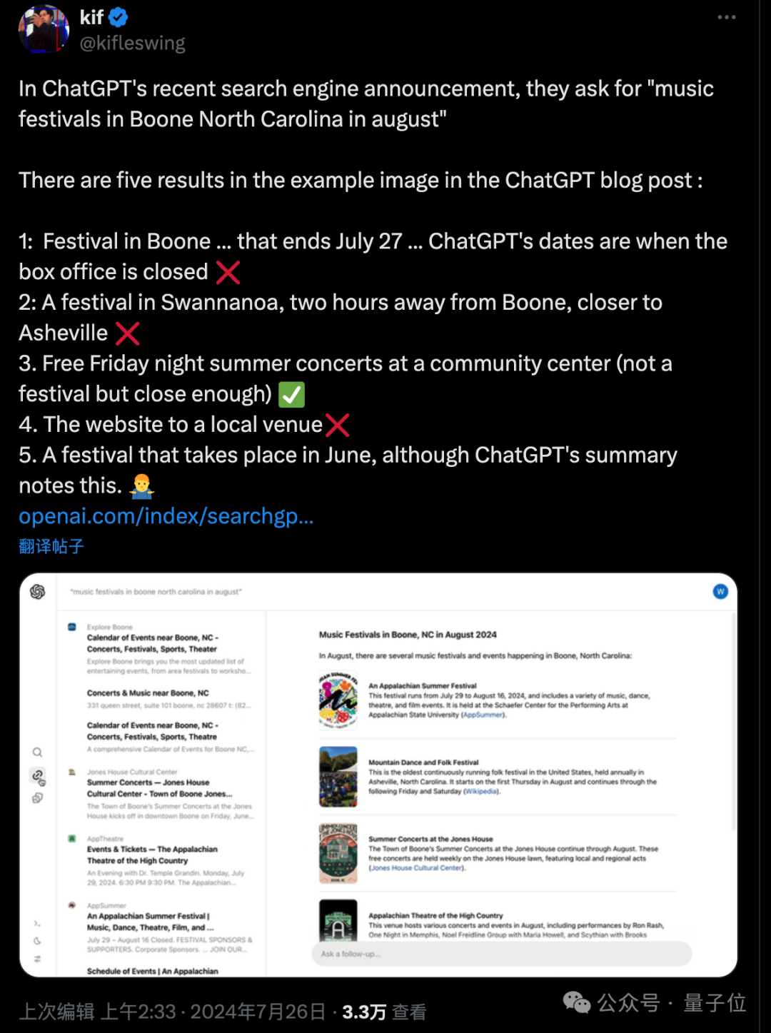 OpenAI挑这样一个问题来演示,除了展示SearchGPT自身能力特点之外,很难说不是专挑谷歌回答不好的例子。