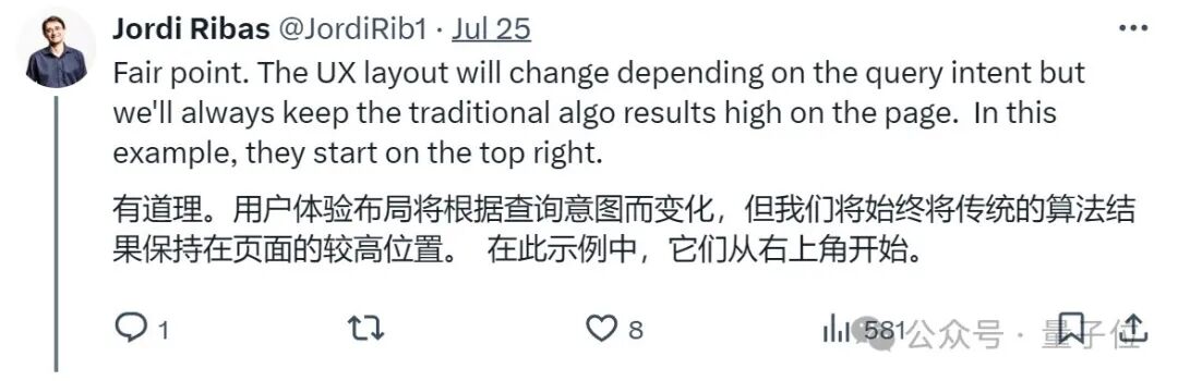 微软搜索主管Jordi Ribas特意强调,传统的算法结果将始终占据页面高位。