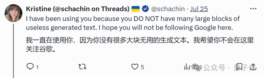 对于此次升级,有网友火速赶来支持,并特意cue到了Bing竞争对手谷歌。