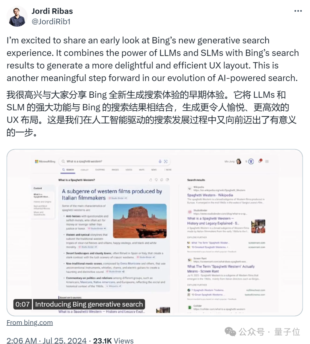参考链接:[1]https://x.com/BenjaminDEKR/status/1816585560682852648[2]https://blogs.bing.com/search/July-2024/generativesearch[3]https://x.com/JordiRib1/status/1816173187299729532