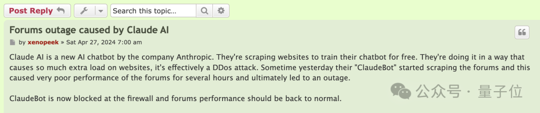 在几个小时中,ClaudeBot多次访问论坛爬取数据,导致论坛在几个小时内处于超低速or崩溃状态,最终完全崩掉。
