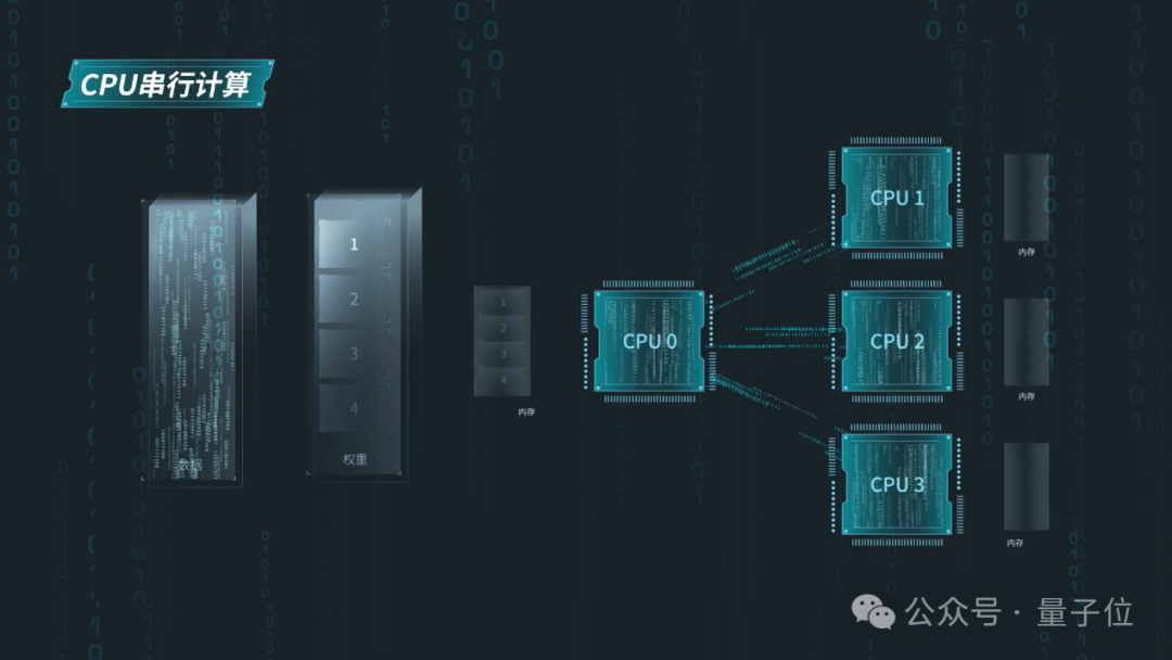 因为并行工作环境的缺乏,AI模型需要频繁地在内存和CPU之间搬运算法权重,但通用服务器默认模型权重只能传输给一个CPU的内存。