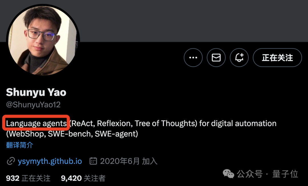 包括在他X主页中的简介,第一句话上来也是Language Agents: