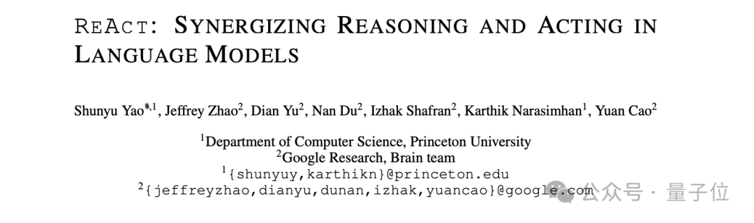 ReAct:一种将推理和行动相结合的方法,通过语言模型生成推理轨迹和行动,来解决各种语言推理和决策任务。