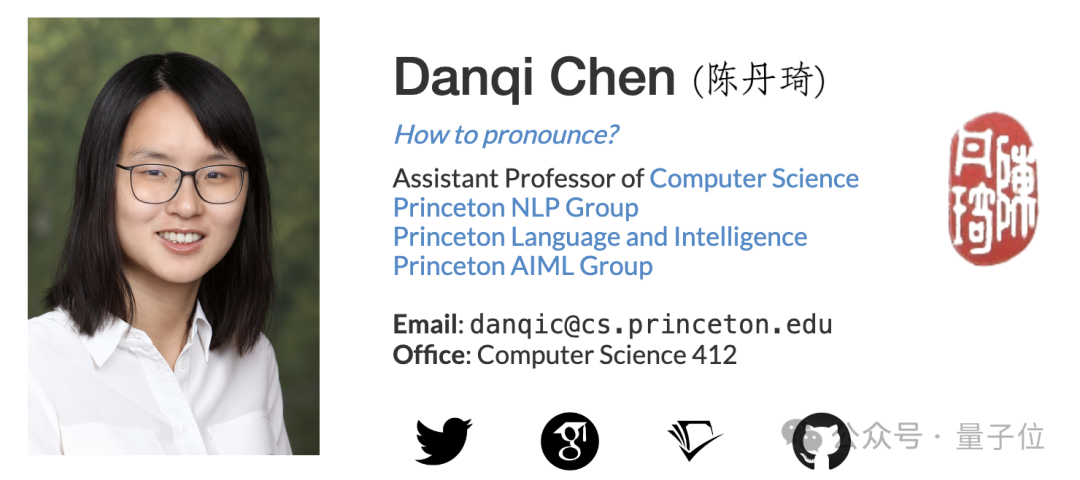陈丹琦这边,清华姚班完成本科学业后,2018年又在斯坦福大学拿下博士学位,主攻NLP,最终成为普林斯顿大学计算机科学系助理教授、普林斯顿语言与智能项目副主任,共同领导普林斯顿NLP小组。