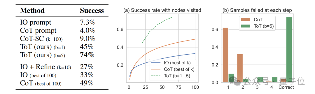 将思维树应用到“24点”游戏中,与此前的思维链(CoT)相比,准确率有了明显提高。