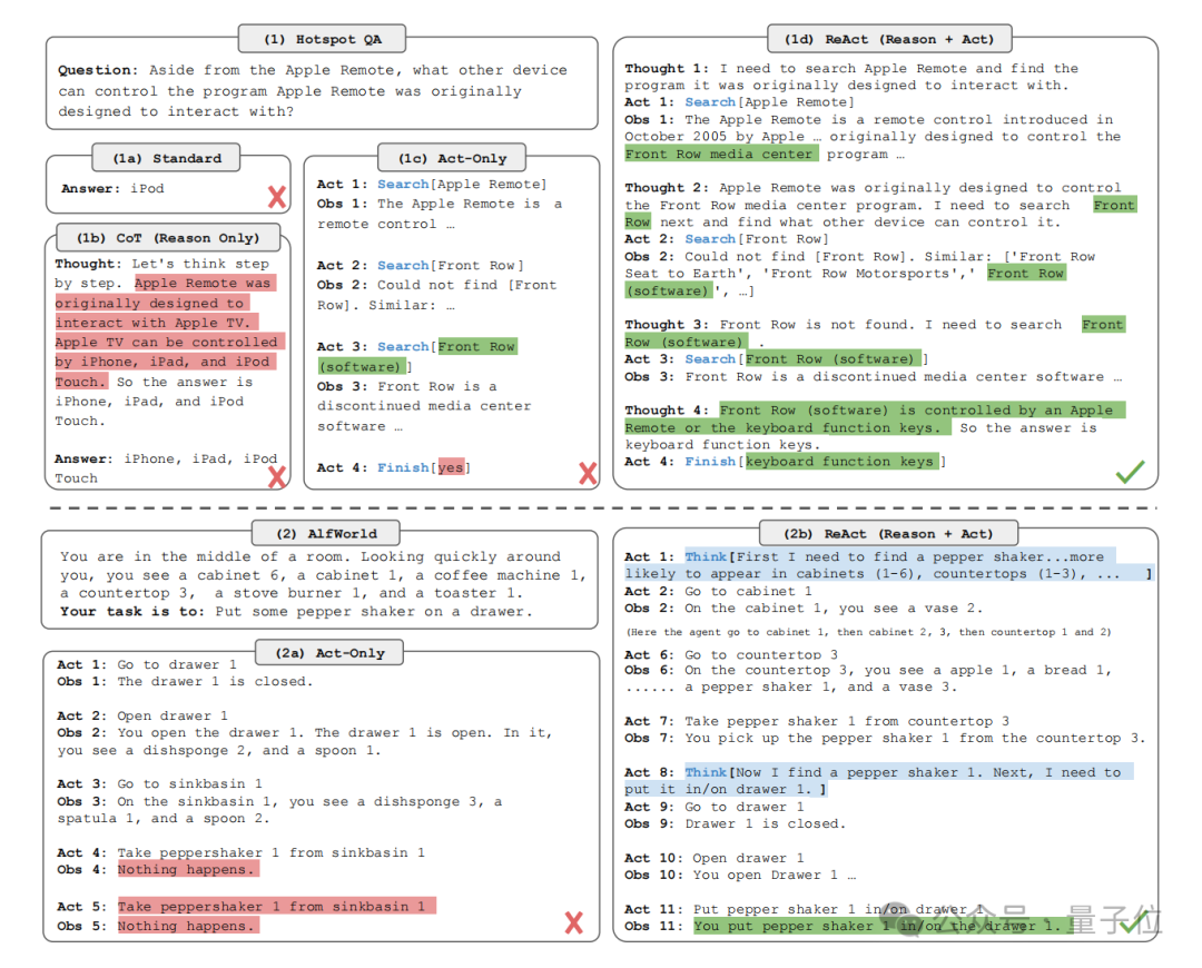 如此一来,便可以结合推理的轨迹和操作,允许模型进行动态的推理,让智能体的决策和最终结果变得更优。