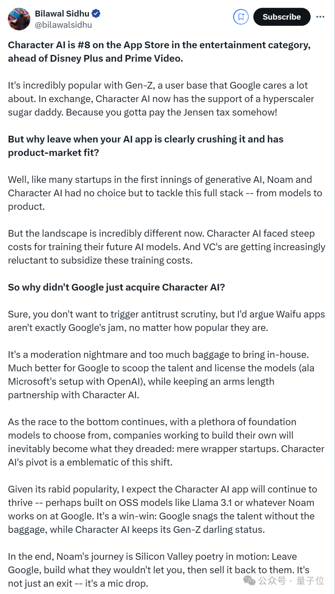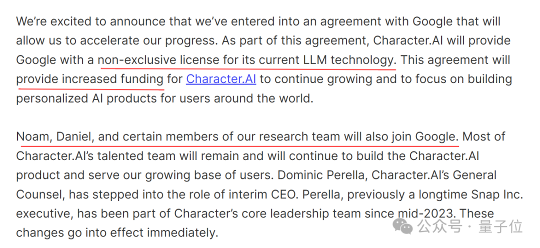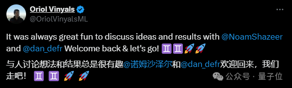 参考链接:[1]https://techcrunch.com/2024/08/02/character-ai-ceo-noam-shazeer-returns-to-google/[2]https://blog.character.ai/our-next-phase-of-growth/[3]https://x.com/OriolVinyalsML/status/1819434987768123503[4]https://x.com/bilawalsidhu/status/1819475991577731401