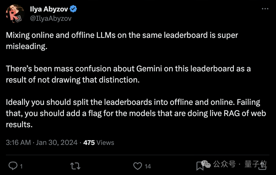 在同一个排行榜上混合在线和离线大模型,是极易引起误解的。