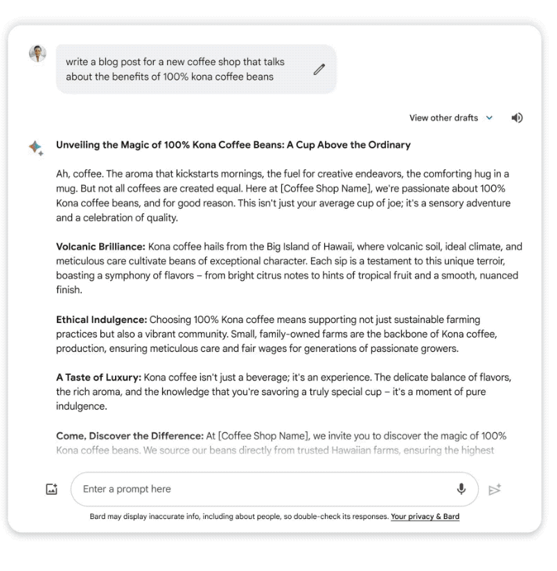 背后的工程师(来自谷歌DeepMind)也在网上分享了一组Bard新鲜出炉的作品,尽管提示词简单,但内容看起来还不错。