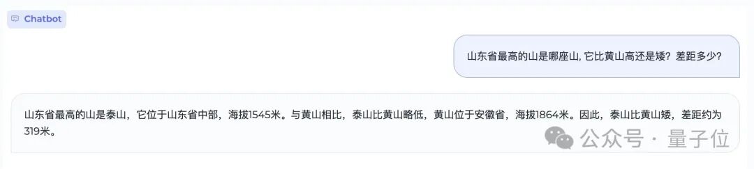再如“山东省最高的山是那座山,它比黄山高还是矮?差距多少?”这样的问题,小钢炮也是轻松应对: