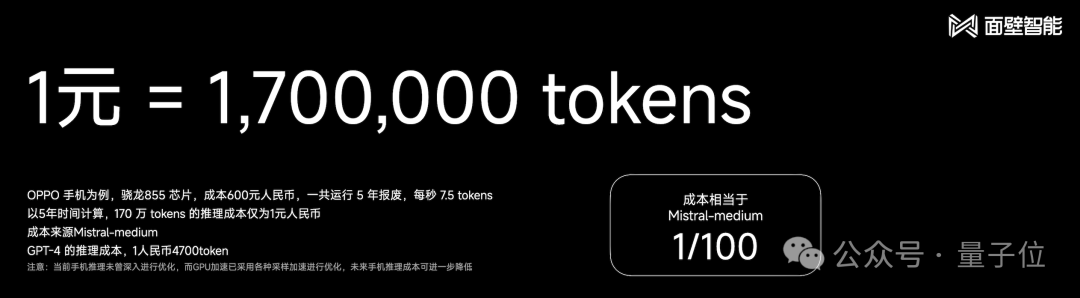 刚才手机里GPU的成本大约600元,每秒7.5tokens,假设运行5年报废,共计170万tokens,则其推理成本仅为1元。