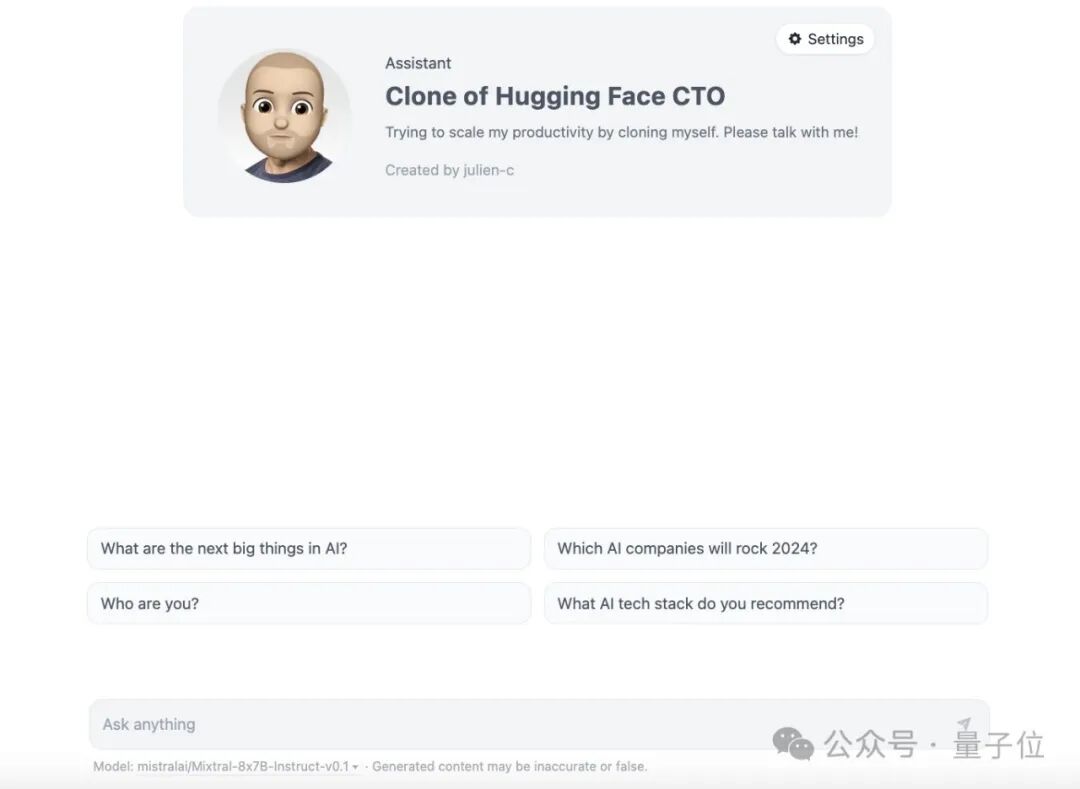 按照Hugging Face技术总监兼LLM总监的话来说,创建这样的自定义机器人(助理)非常简单,只要点两下。