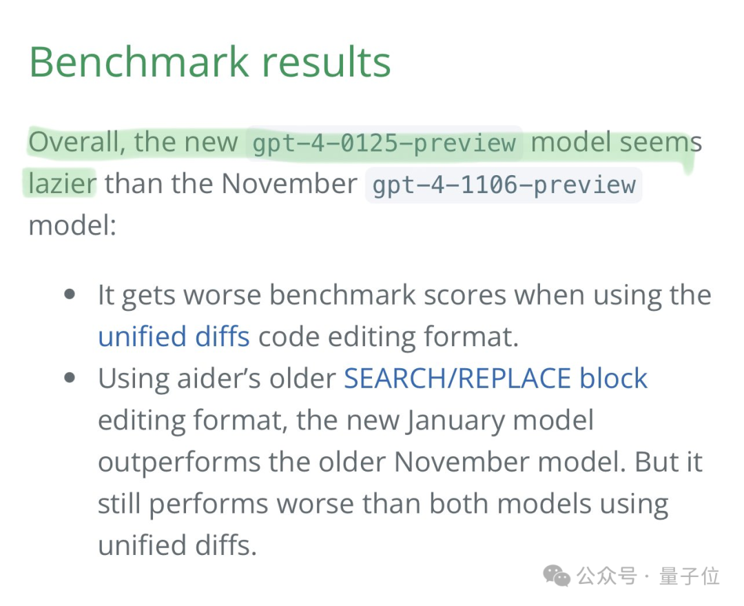 参考链接:[1]https://twitter.com/sama/status/1754172149378810118[2]https://aider.chat/docs/benchmarks-0125.html