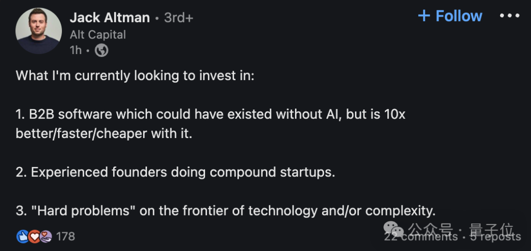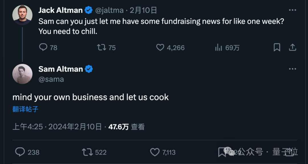 参考链接:[1]https://twitter.com/jaltma/status/1756044665923748319[2]https://www.wsj.com/tech/ai/sam-altman-seeks-trillions-of-dollars-to-reshape-business-of-chips-and-ai-89ab3db0[3]https://www.theinformation.com/articles/alt-capital-raises-150-million-fund-extending-altman-brothers-funding-spree