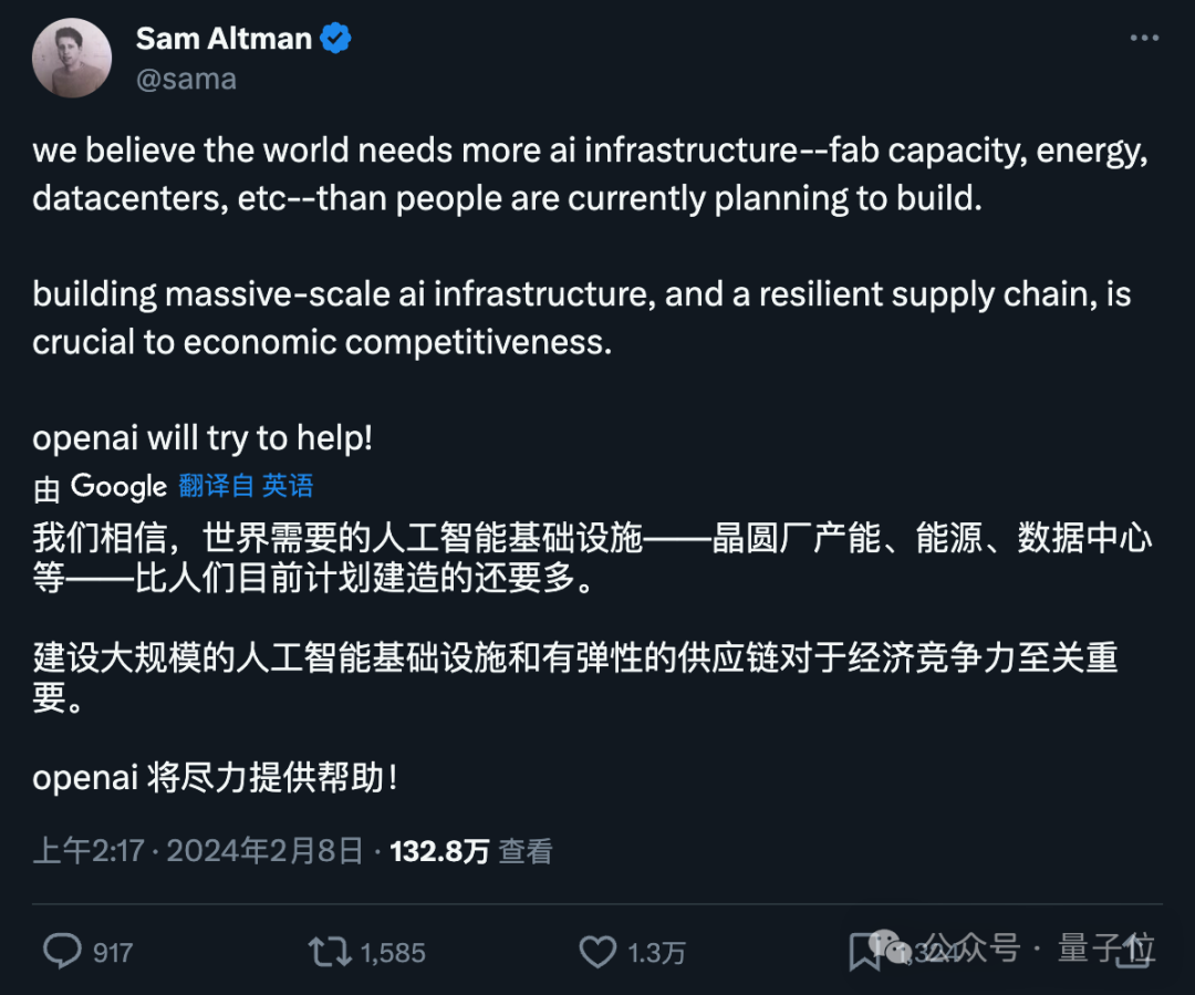 就在消息传出几天之前,他在个人账号上还有所暗示,世界需要更多的AI基础设施。