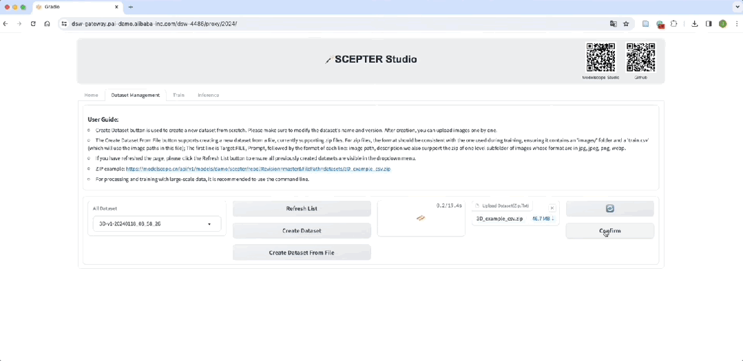 同时,也可将自行准备的图片打包压缩,并以csv或txt文档建立图像(文件名)和prompt的对应关系,导入SCEPTER平台。