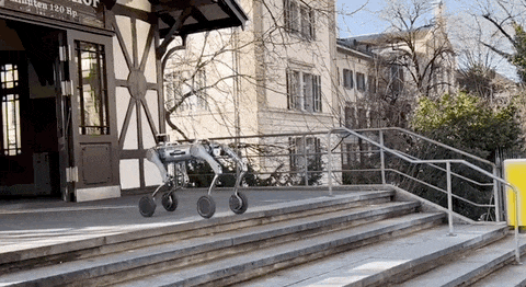 他们给ANYmal添加了动力车轮,使其在移动效率和能力上都有所提升,并能应对楼梯、人行道等复杂环境。