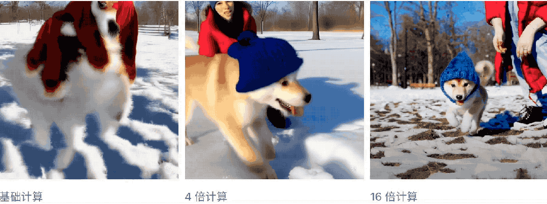 下图展示出随着训练资源的增加,样本质量明显提升(固定种子和输入条件)。