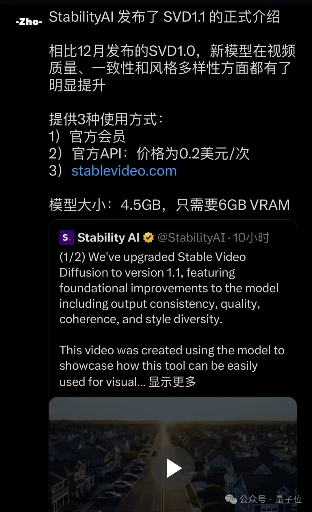 值得一提的是,有眼尖的网友发现,昨天Stability AI也发布了SVD 1.1。