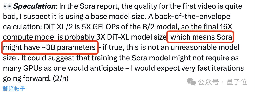 包括“Sora是一个数据驱动的物理引擎”、“Sora建立在DiT模型之上、参数可能仅30亿”等等。