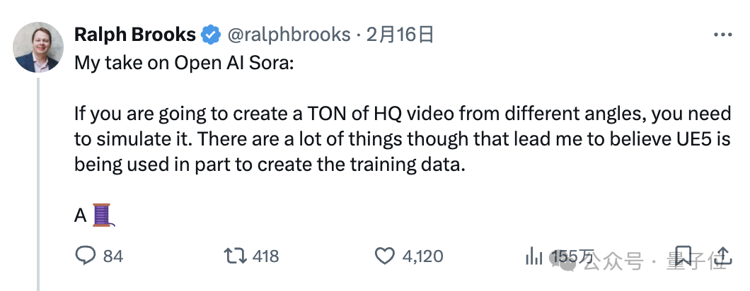 除此之外,还有胆大的网友甚至怀疑Sora用上了虚幻引擎5来创建部分训练数据。