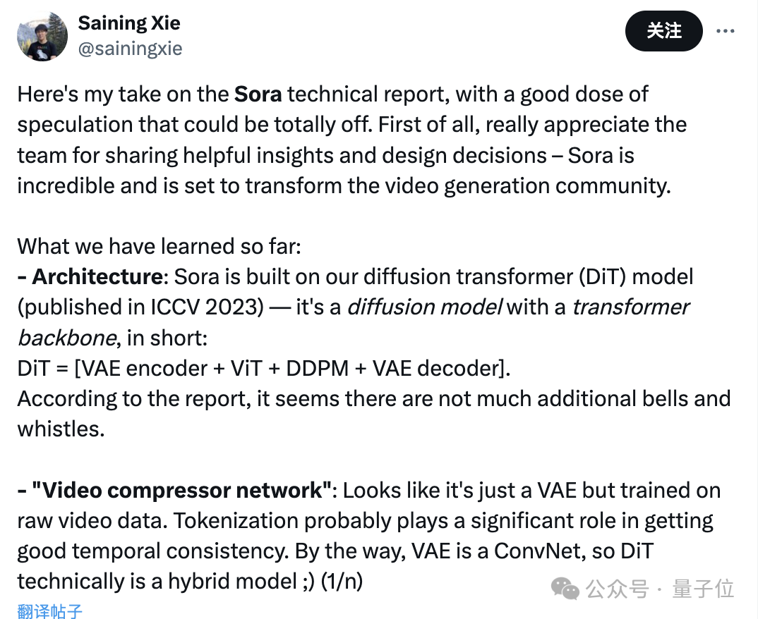 纽约大学助理教授谢赛宁(ResNeXt的一作)直言,Sora将改写整个视频生成领域。