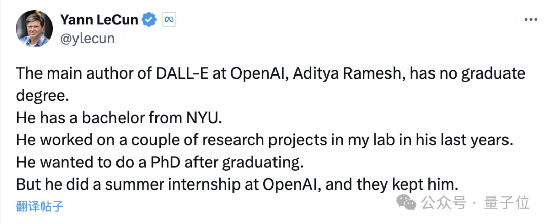 据LeCun介绍,Aditya本科就读于纽约大学,并在他的实验室参与过一些项目。