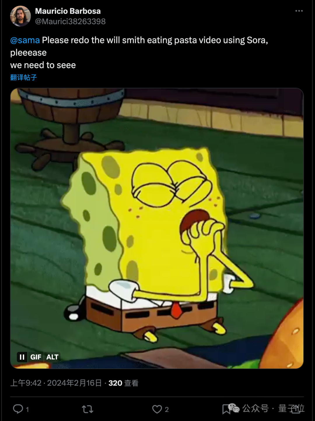 自从Sora公布以来,每天都有网友@奥特曼想看这段吃面的复刻,求求了。