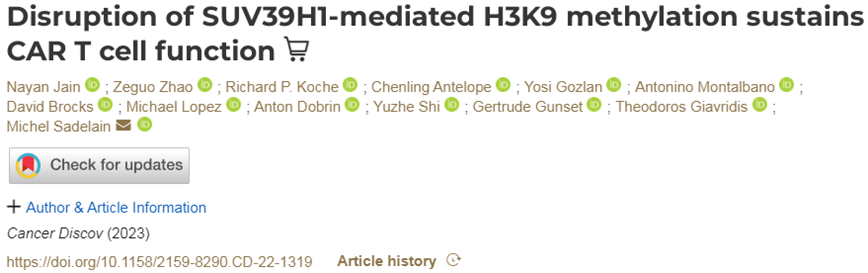 1.Cancer Discov:新研究表明破坏SUV39H1 基因有望改善CAR-T细胞疗法的抗癌效果
