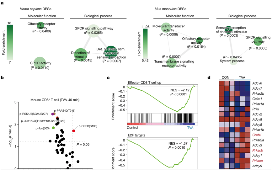 由Chen实验室和He实验室共同完成的这些附加测定显示,TVA 会使细胞表面上的一种名为 GPR43 的受体失活,而这种受体通常会被肠道微生物群经常产生的短链脂肪酸激活。TVA 会压制这些短链脂肪酸,并激活一种称为 CREB途径的细胞信号传导过程,该途径参与细胞生长、存活和分化等多种功能。他们还发现,CD8+ T 细胞中的 GPR43 受体被完全清除的小鼠模型也无法提高抗肿瘤能力。
