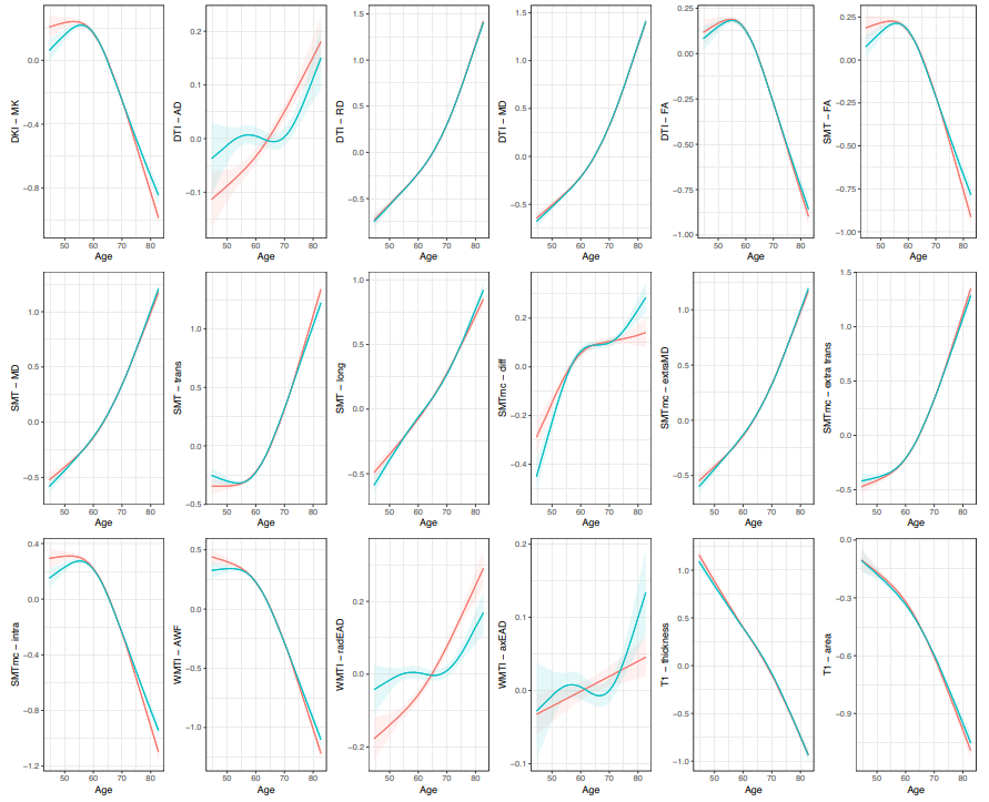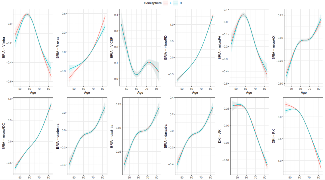 目前,人们常通过微观结构特征来解释大脑的不对称性,具体来说,白质通路(WM)或神经元内外水分布的组织(intra- and extra-neurite water organisation)可能是导致大脑功能侧化的基础。当前已有研究证明人脑表现出的结构和功能不对称,会对衰老以及精神方面疾病的发展产生影响。但对于诸如大脑年龄预测以及大脑不对称性是否会发展等问题,我们尚未完全有解答。