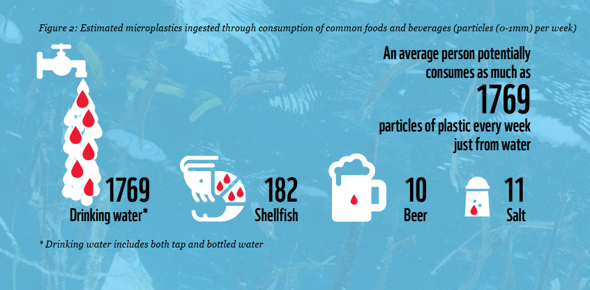 这个看上去离谱的数据,是世界野生动物基金会进行研究得出的结论,而且人类摄入微塑料的主要来源,竟是喝水——一个普通人每周就能喝进多达1769个NMPs颗粒[1]。